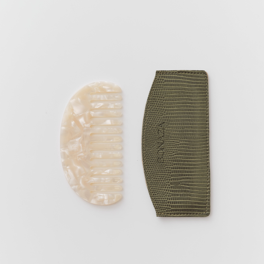 Svaki češalj dolazi u mekanoj torbici za pohranu, koja čuva njegovu profinjenu teksturu i oblik.