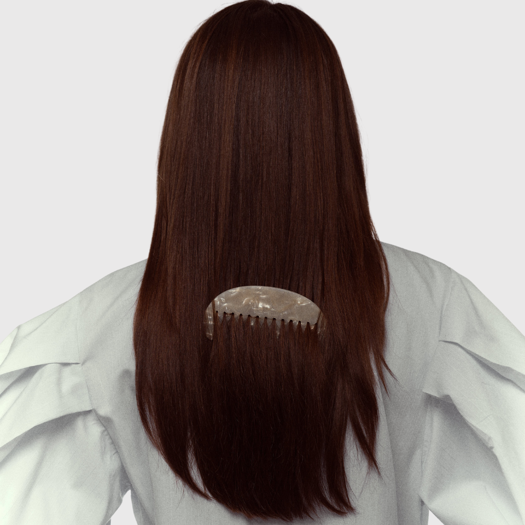 Otkrij ljepotu u svakom potezu s našim Bonaza Pearl elegantnim češljem, izrađenim od biološki razgradivog celuloznog acetata, materijala poznatog po svojoj izdržljivosti, glatkoći i održivosti.